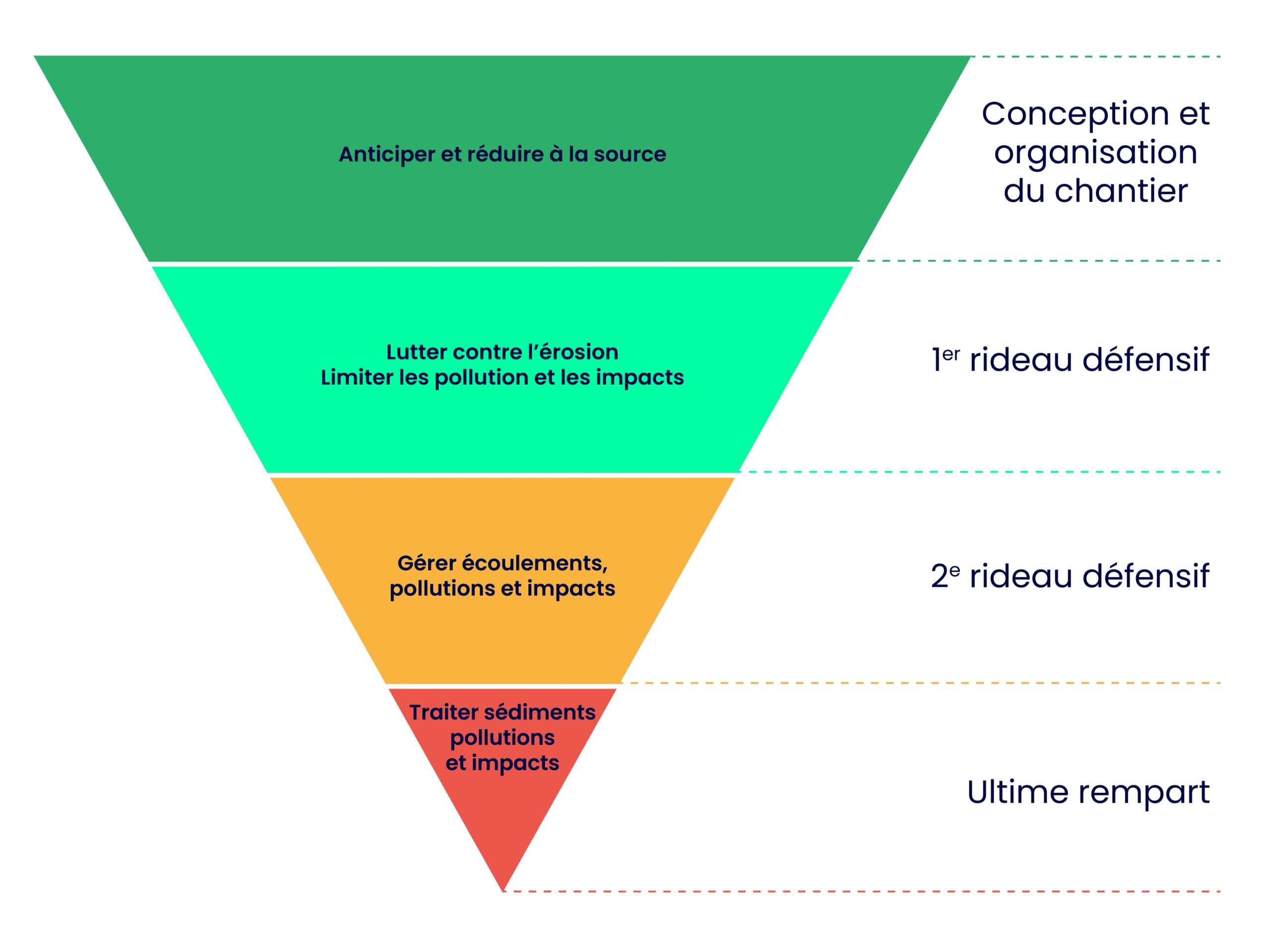 L’approche multi-barière consiste à combiner entre elles différentes bonnes pratiques environnementales en favorisant les techniques préventives avant les dispositifs curatifs. Elle permet d’adapter les bonnes pratiques à mettre en œuvre en fonction :