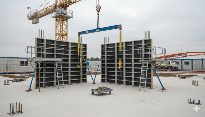 Les fabricants de banches intègrent désormais la prévention des risques dès la conception des coffrages. Ainsi, cette intégration se manifeste par la fourniture de notices d’instruction, des moyens de stabilisation, des points d’accrochage pour les élingues, des passerelles de bétonnage sécurisées, et des systèmes de fermeture accessibles depuis le sol.