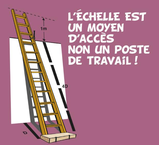 Attention, une échelle, vis-à-vis de la réglementation, est un moyen d’accès et ne doit pas être considérée comme un poste de travail.