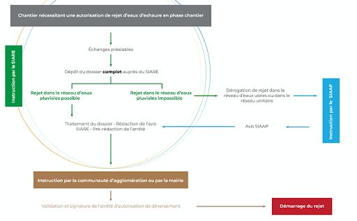 Le schéma ci-dessous synthétise la procédure de demande d’autorisation de rejet temporaire d’eaux d’exhaure établie par une collectivité :