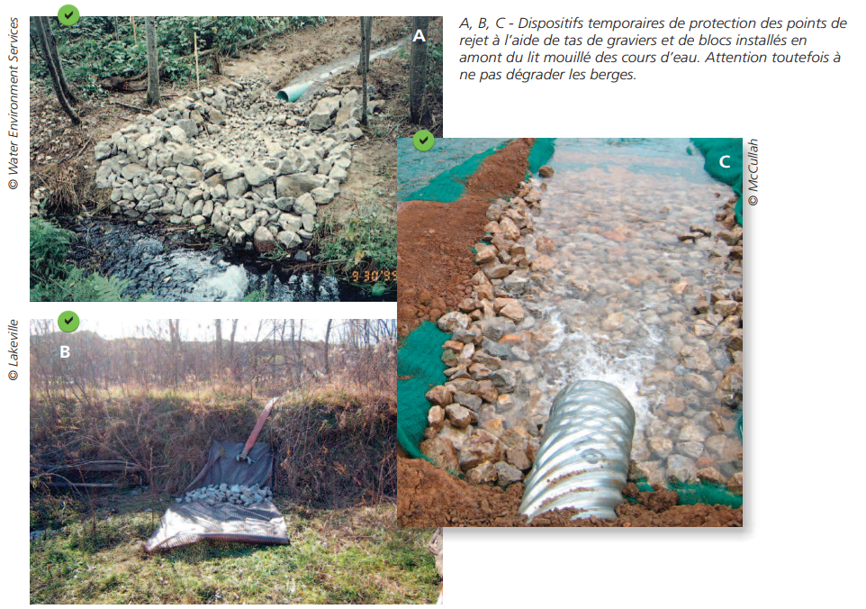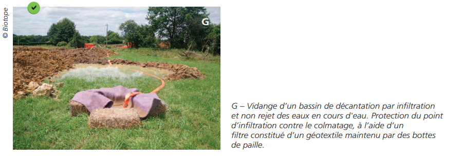 Les exutoires naturels recevant des effluents de chantier doivent impérativement être protégés afin de :