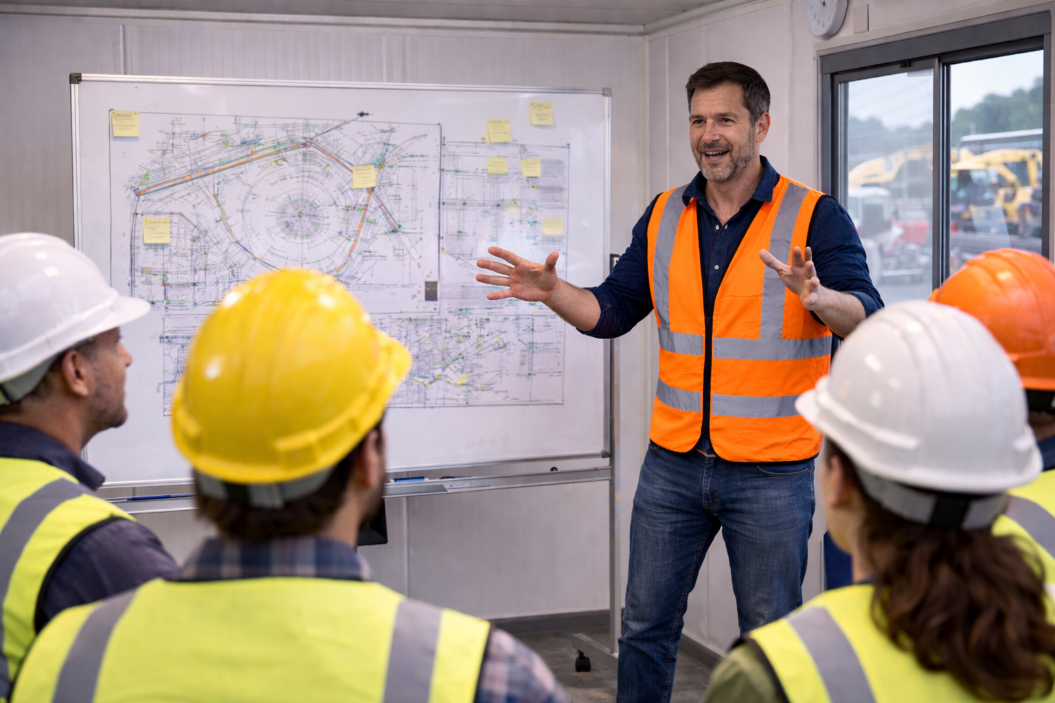 Lors d’un briefing sécurité, adopter une posture stable, un ton posé et un regard attentif renforce la portée du message.
