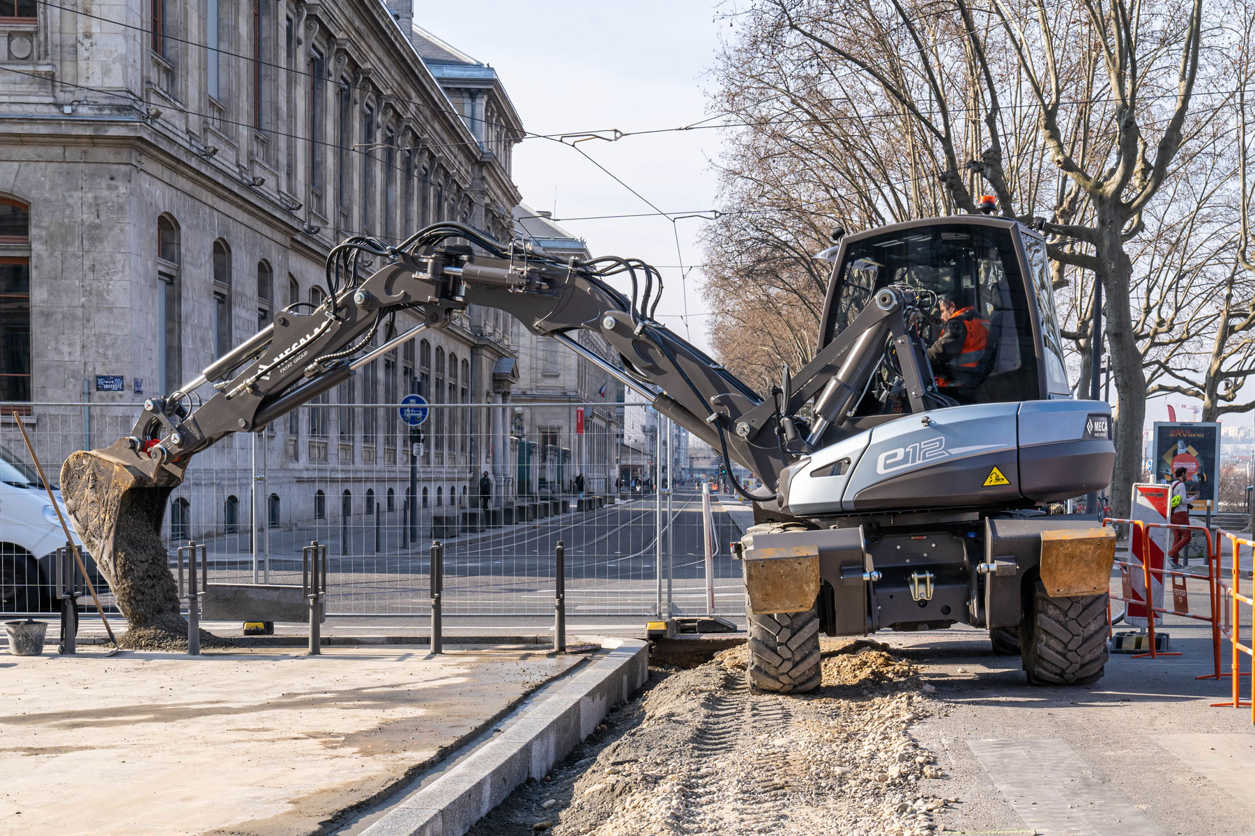 La transition écologique sur chantier ne se résume pas au seul carbone. Elle concerne aussi les nuisances locales, la qualité de l’air, le bruit et l’intégration du chantier dans son environnement immédiat. Sur ce point, la pelle à pneus électrique apporte une réponse cohérente, en particulier pour des interventions urbaines où la maîtrise des nuisances devient un sujet central.