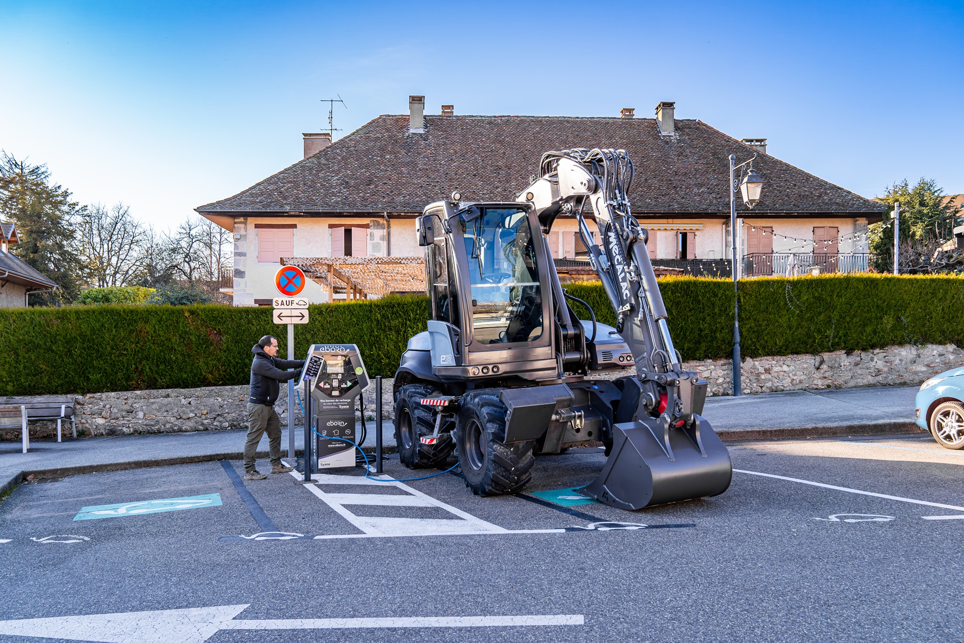 Sur les chantiers urbains notamment, ce type de matériel répond à plusieurs enjeux actuels : réduction des nuisances, amélioration du confort de travail et diminution des émissions directes à l’usage. Dans le cas d’une pelle à pneus, l’intérêt ne tient pas seulement à l’abandon du moteur diesel. Il tient aussi au fait que la machine conserve des qualités attendues sur chantier, comme la mobilité, la compacité et la capacité à intervenir rapidement dans des espaces contraints.