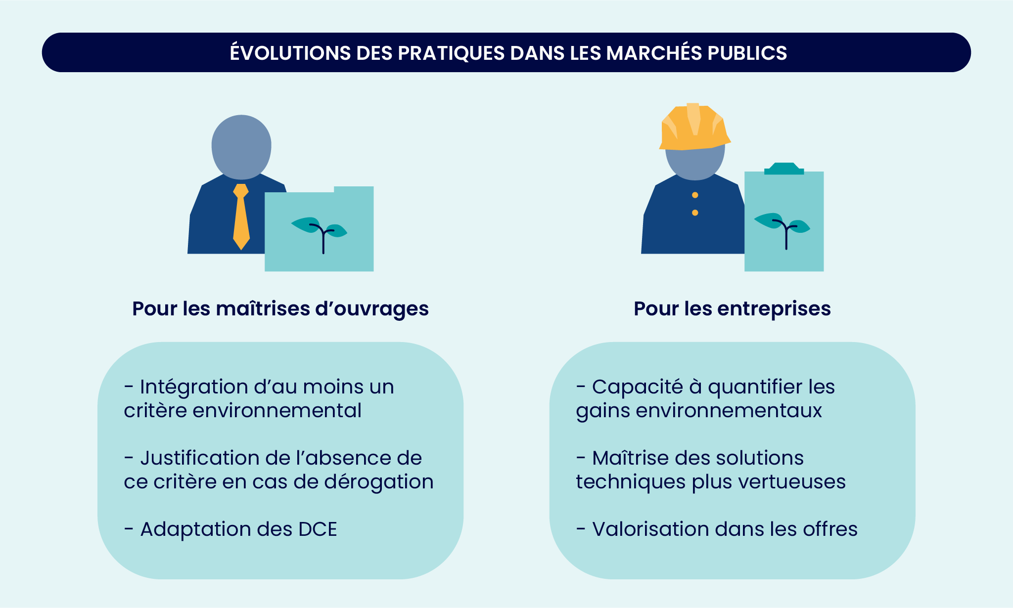 - Valorisation dans l’offre technique : démonstration des bénéfices environnementaux dans le mémoire technique, selon les attendus du marché.